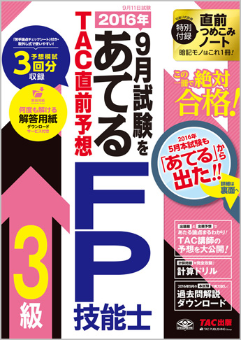 【2016年9月FP技能士3級 予想問題集】直前対策にこの一冊!模試3回掲載!