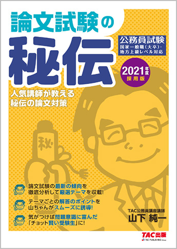 公務員試験に強いスクールとして知られる「資格の学校TAC」の名物講師 山下純一先生の秘伝をまとめた1冊で、論文試験に対する万全の準備を整えましょう。