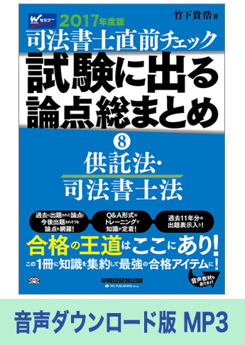 ※本音声教材(mp3)は、『【音声ダウンロード版】聴いて攻略! 2016年度版 直前チェック 試験に出る論点総まとめ 8 供託法・司法書士法』から内容の変更はございません。