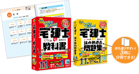 人気No.1書籍を使用して、ズバッとポイント講義!合格に欠かせないポイントをズバッと解説している講義は、ベストセラー書籍「宅建士の教科書」「宅建士の論点別過去問題集」とともに活用することで、学習効果を最大限に引き上げます。1回約15分~30分の講義なので、スキマ時間を利用して学習がサクサク進められます。